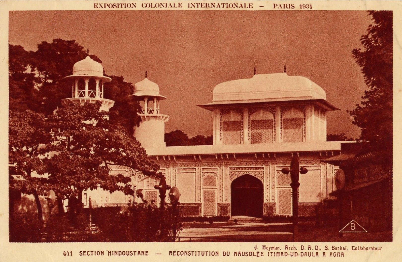 Reproduction du mausolée Itimad-Ud-Daula d'Agra, le pavillon de l'Indoustan présente dans son pavillon une exposition des produits de l'Inde.