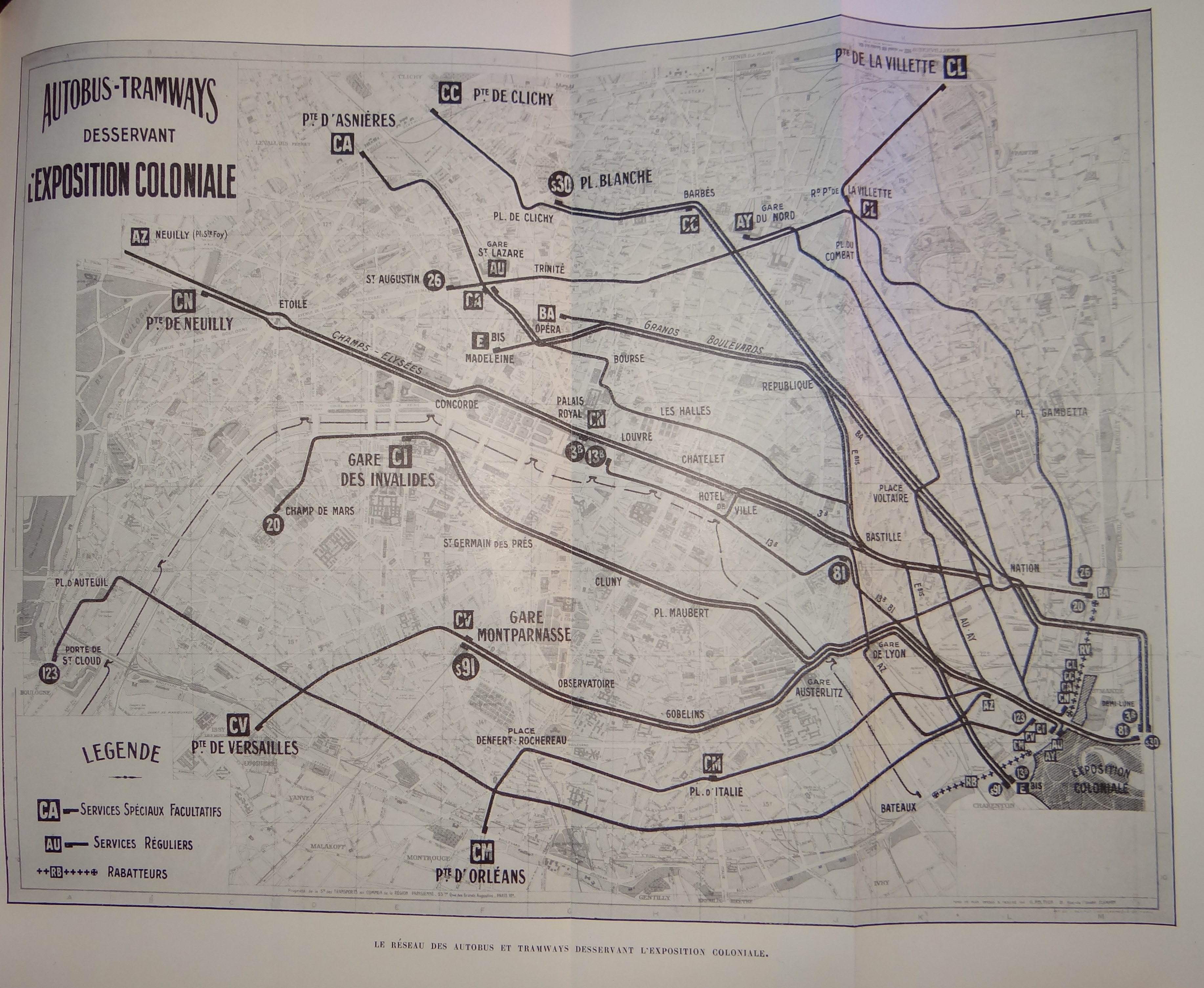 Pour installer et accéder à l'Exposition Coloniale, plusieurs aménagements des moyens de transports parisiens furent effectués :
