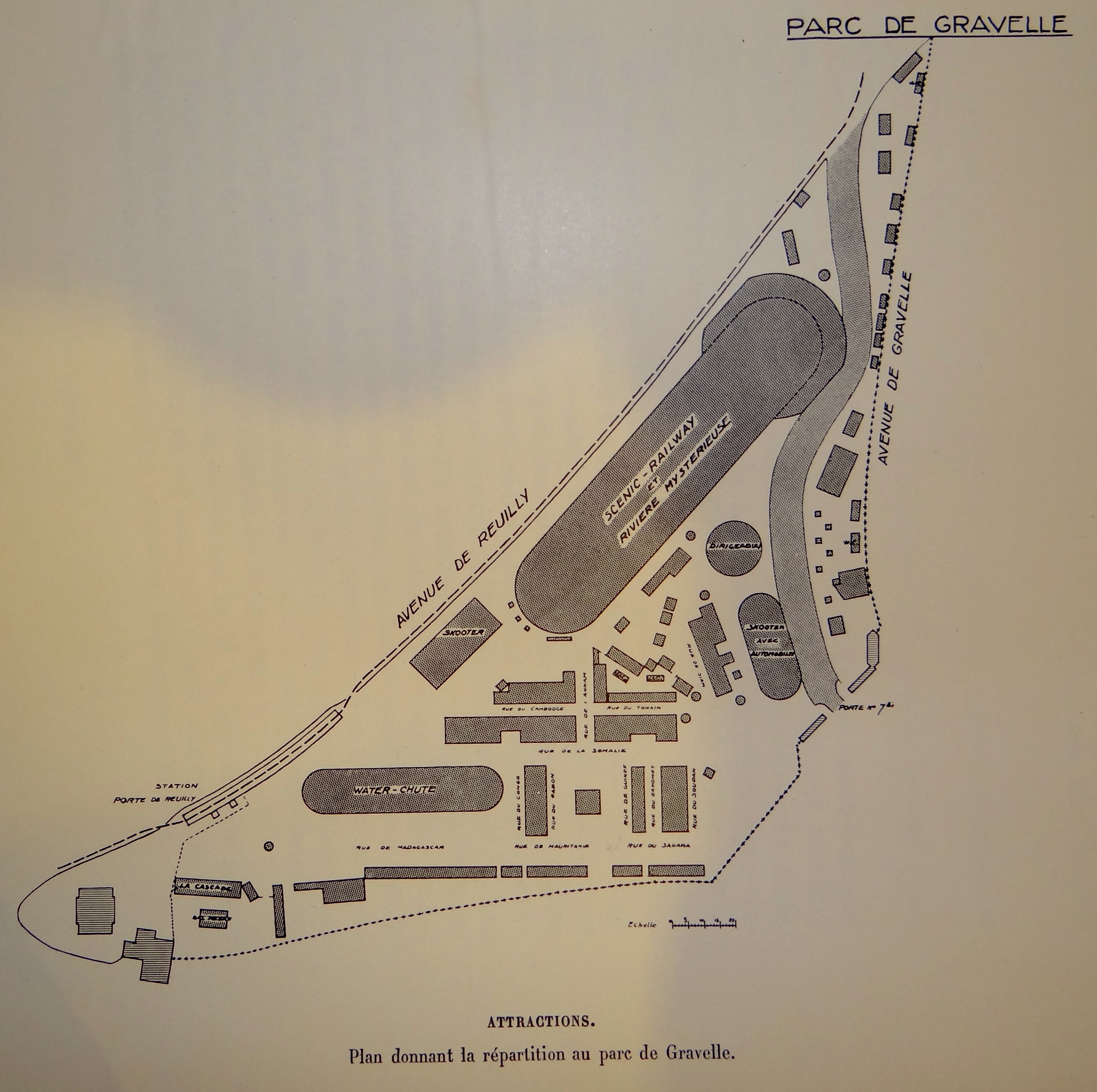 La première partie du parc des attractions est le Parc de Gravelle, entre la porte de Reuilly et le palais d'Angkor Wat, qui présente diverses attractions foraines. La plus importante de ces attractions est le "Scenic Railway", ensemble de montagnes russes dans un décor colonial.
